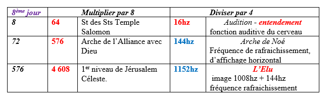 1728 = 1152 + 576 soit 1152 le Racheté de la Terre et 576 l’Arche de l’alliance avec Dieu